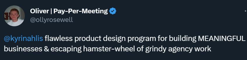 "Before Kyri, I was lost on product development. With Kyri's guidance, we've launched a successful course and community. He provided step-by-step support, SOPs, and even hands-on help. Highly recommend!"Dan West, Online Sales Coach