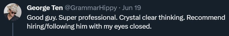 "He possesses a treasure trove of community-building best practices and has significantly helped us craft the entire user journey and strategic planning."JDello, 'Copythinking' Co-Founder
